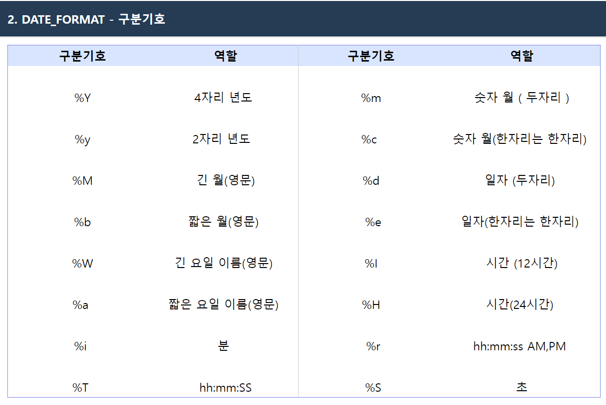 => DATE_FORMAT( date , '%Y-%m-%d') alias할 이름 다음과 같이 작성하면 된다.