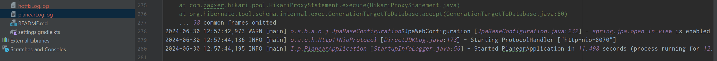 절대경로 지정 없이 파일명만 입력해 상대경로로 저장해두면 src안에 log파일이 저장되는 것을 알 수 있다.